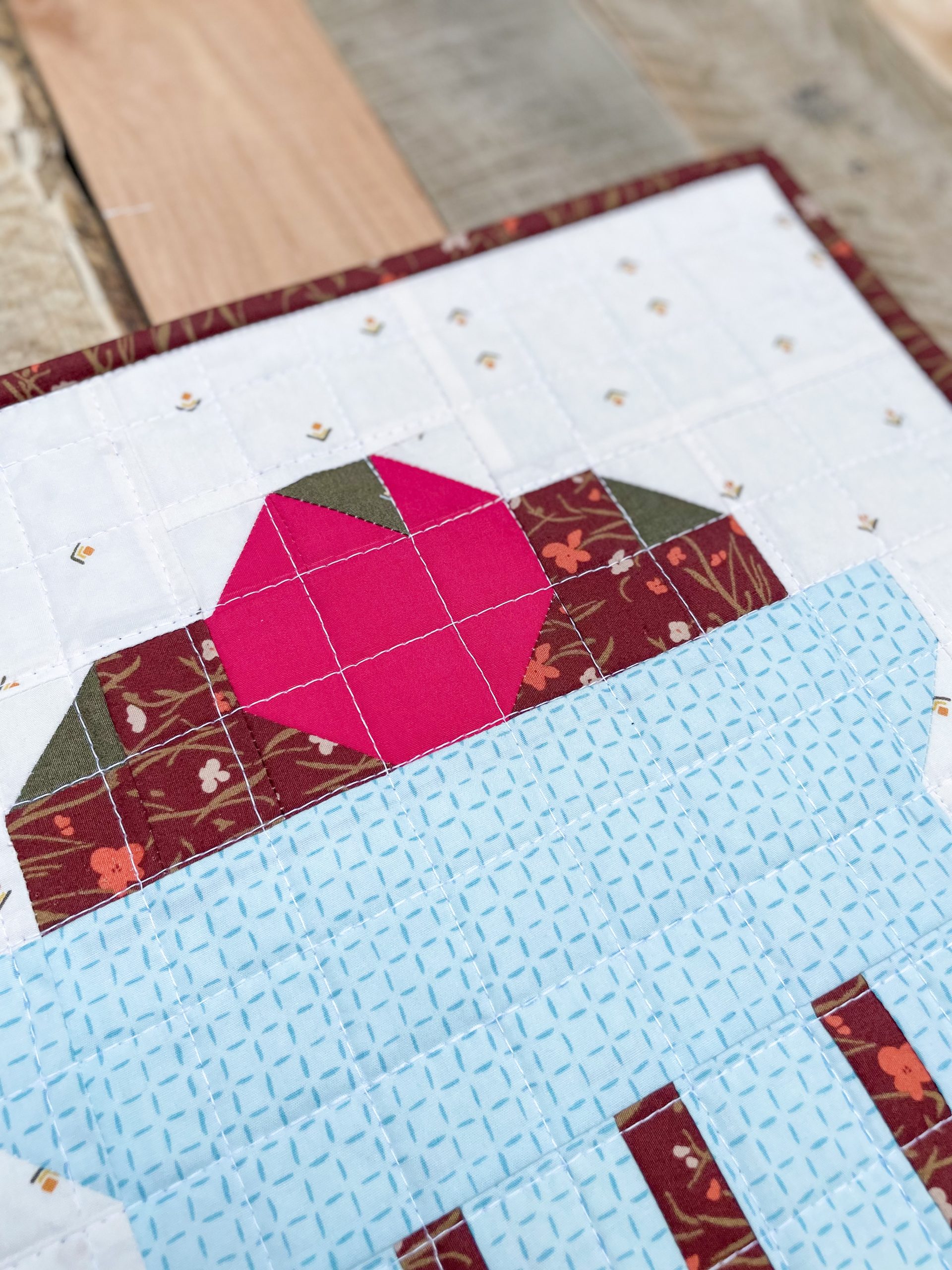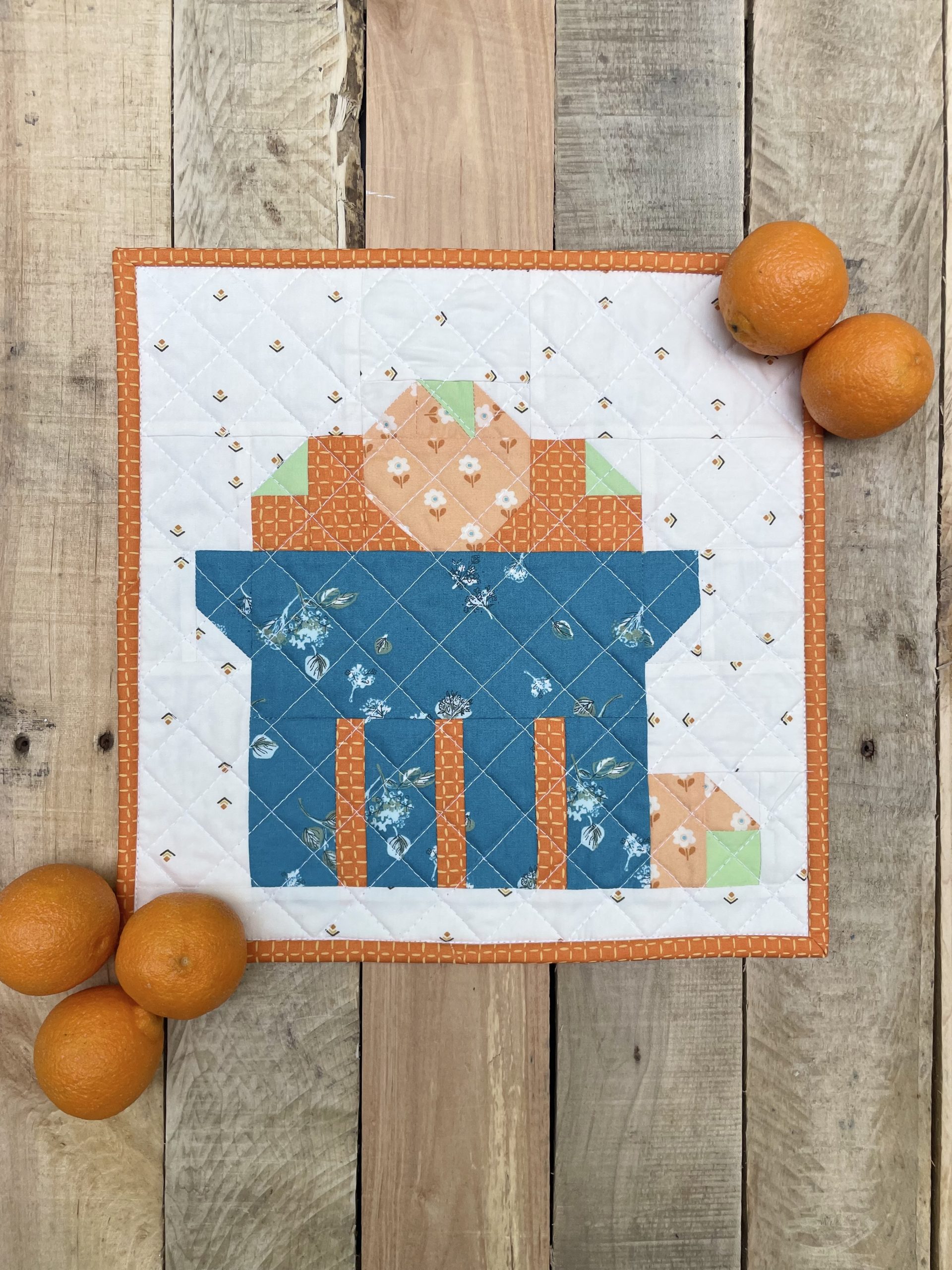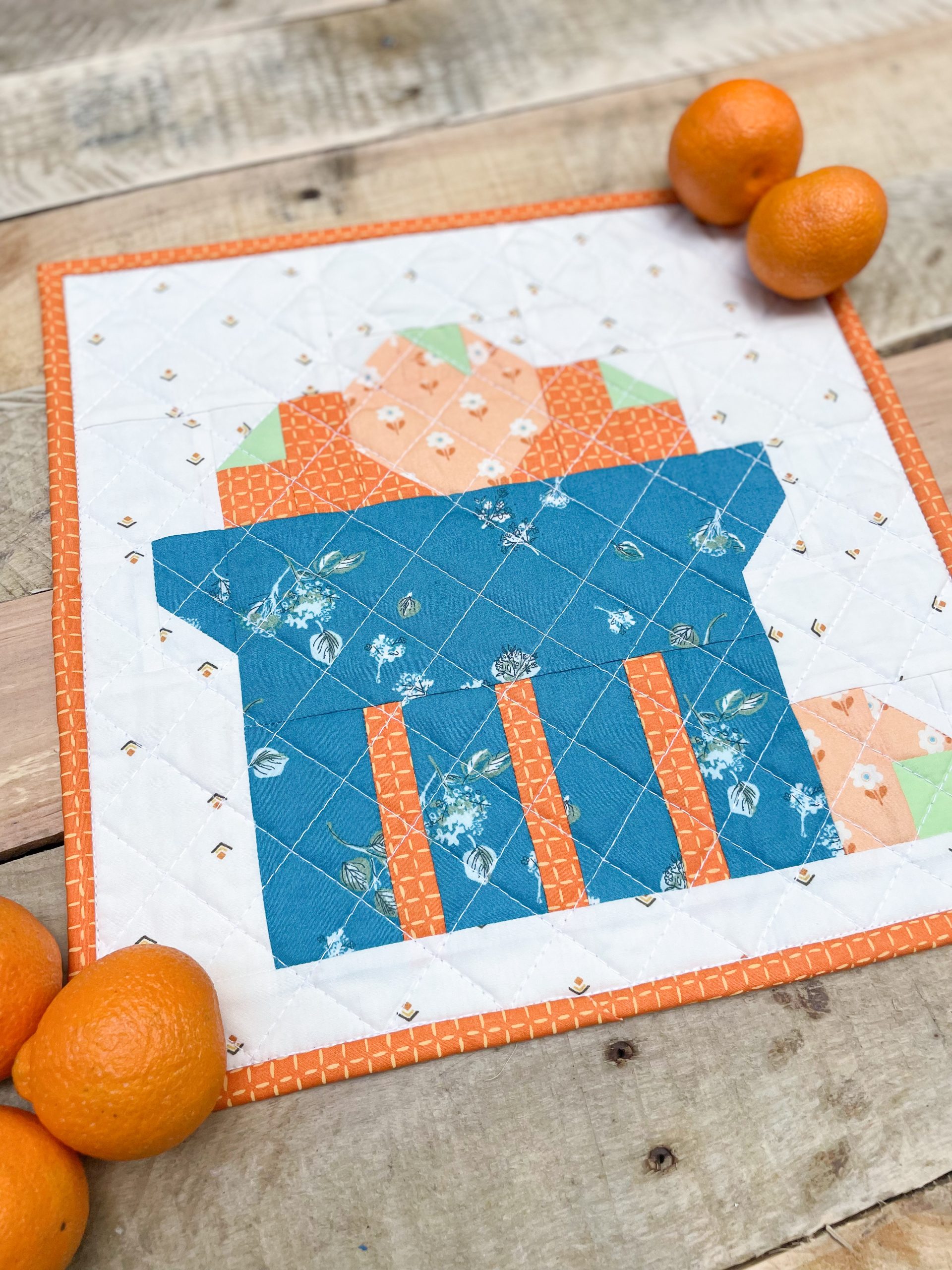 Orchard Delight finishes at 12″ x 12″. It is a scrap-friendly pattern. This mini is from the 2024 Farmer’s Market Quilt Along with the Stitcher’s Society. This little block is versatile and a quick, easy make. Change the color of the fruit to create apples, peaches, lemons, apricots, or whatever you like. Sew together multiple blocks to create a table runner, wall-hanging, or even a throw!