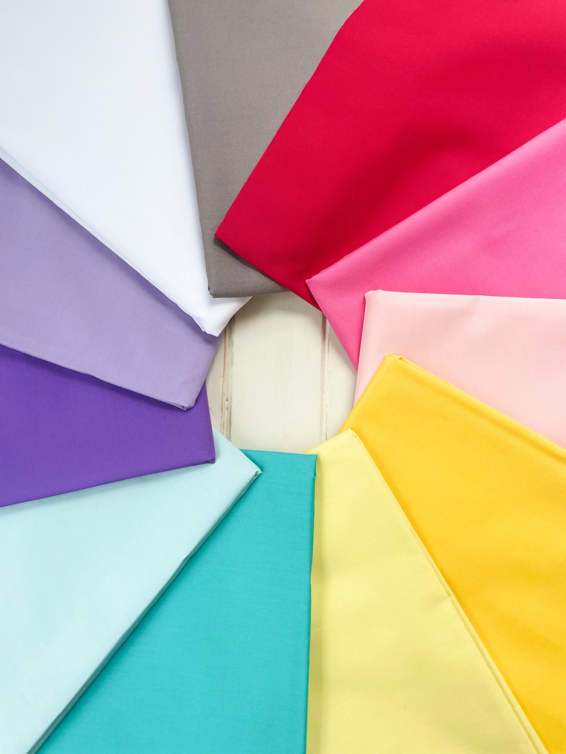 This quilt kit is for the Social Butterfly quilt as seen in the August 2025 issue of American Patchwork and Quilting magazine. The fabrics in this kit are Art Gallery Fabrics Pure Solids; Snow, Steel, Honeydew, Canary, Crystalline, Cozumel Blue, Purple Pansy, Wisteria, Festival Fuschia, Crystal Pink and Undeniably Red. The kit includes enough fabric to complete the 76 1/2″ x 76 1/2″ Social Butterfly quilt top and binding.