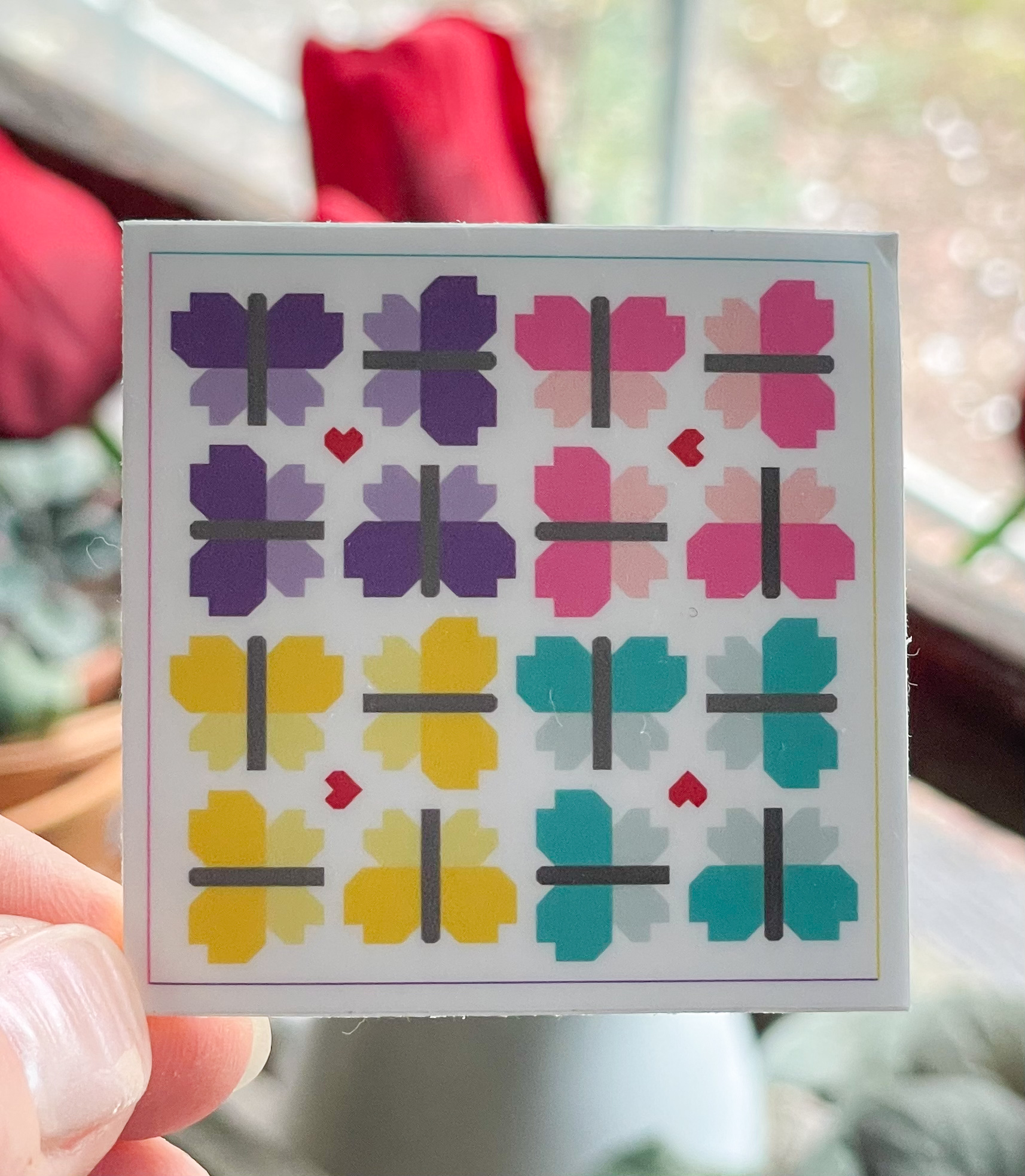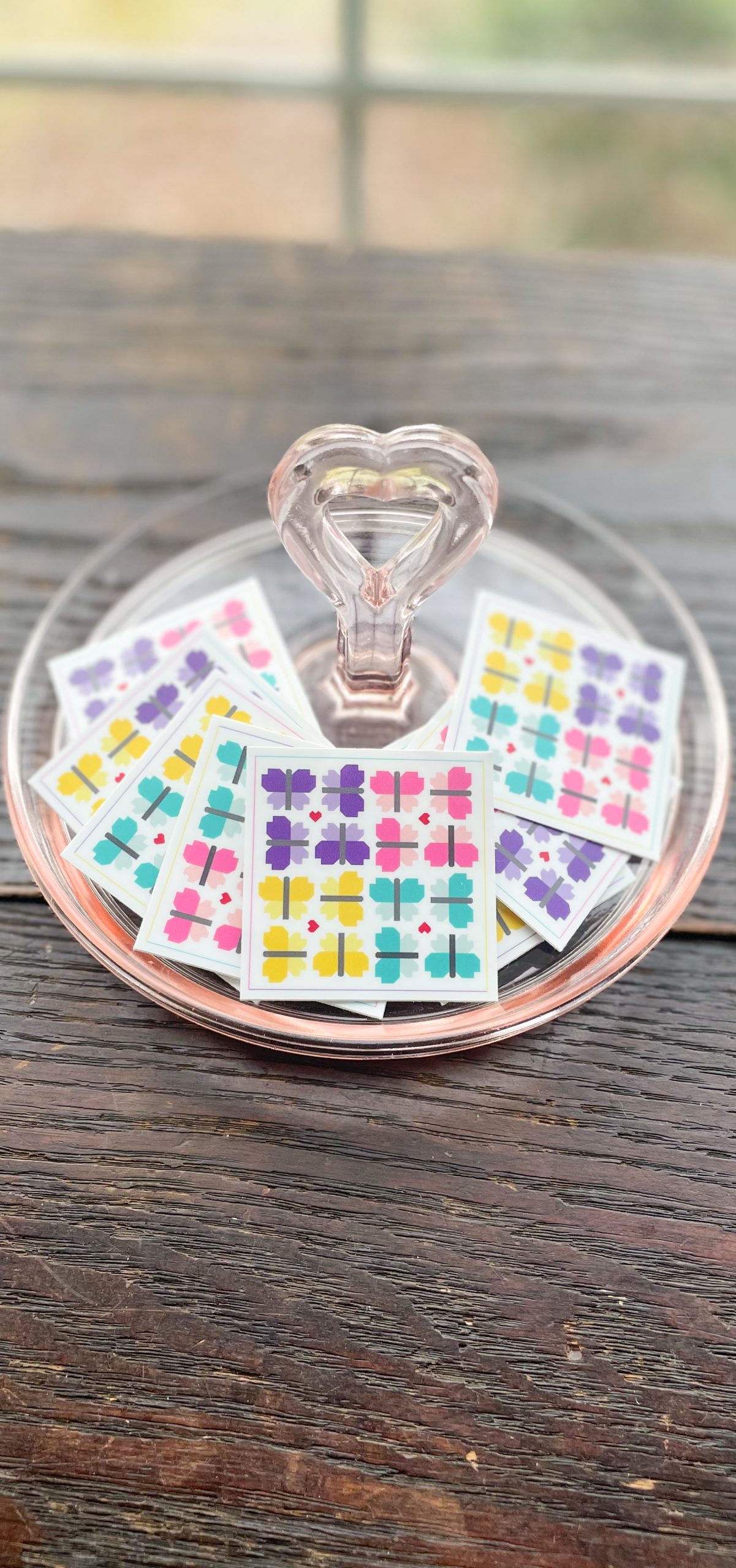 The Social Butterfly vinyl sticker is 2″ x 2″ and is waterproof and dishwasher safe. It is perfect for adding a little fun to your water bottle, sewing machine, clapper, or spray bottle.