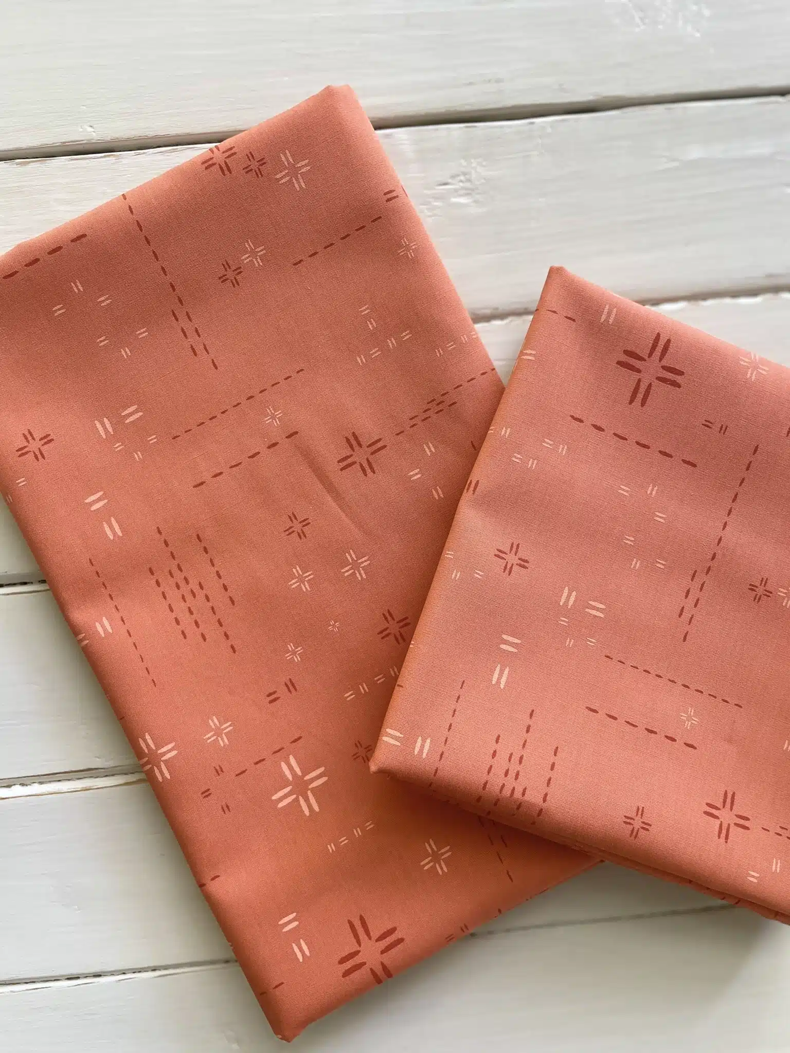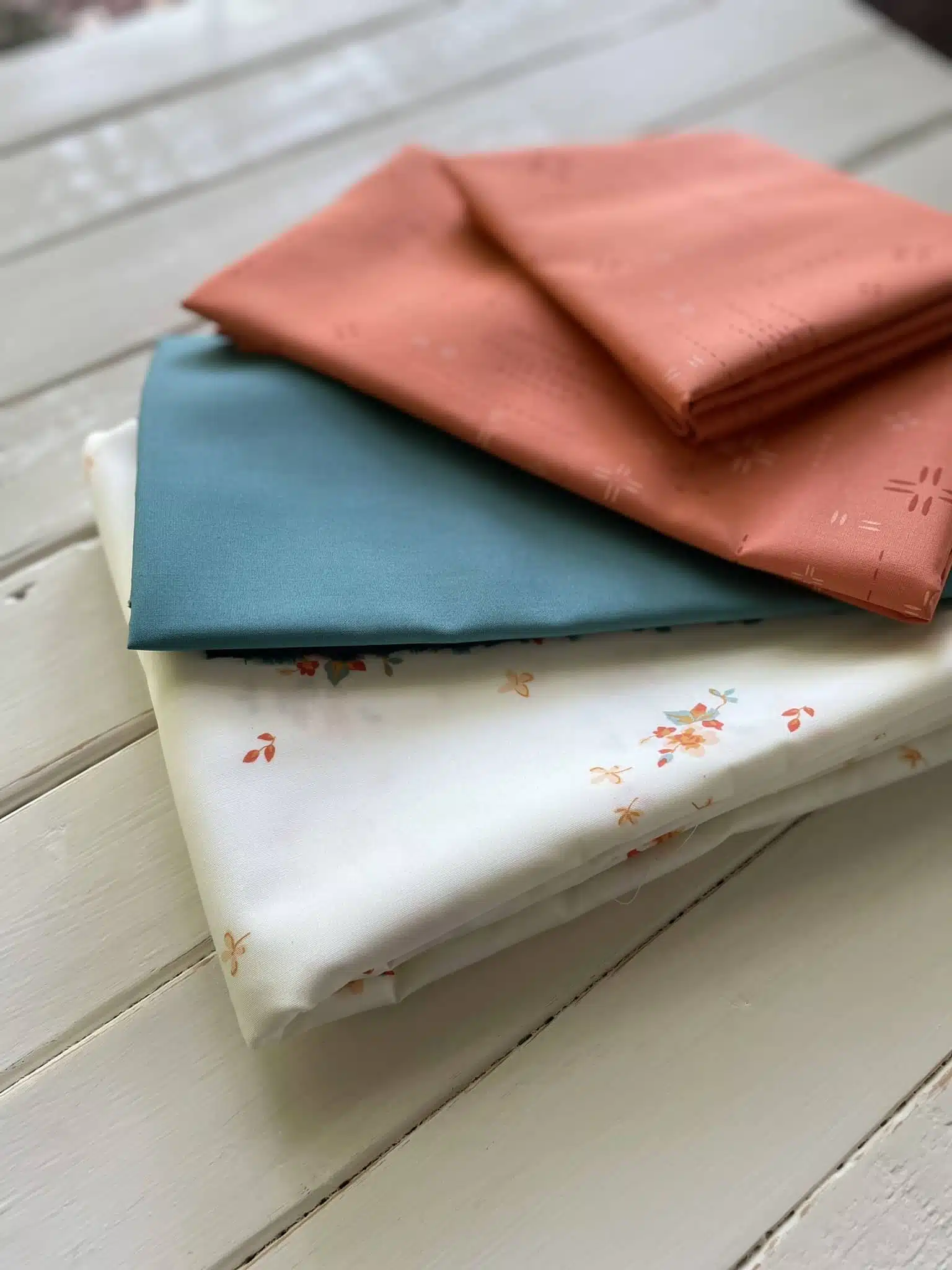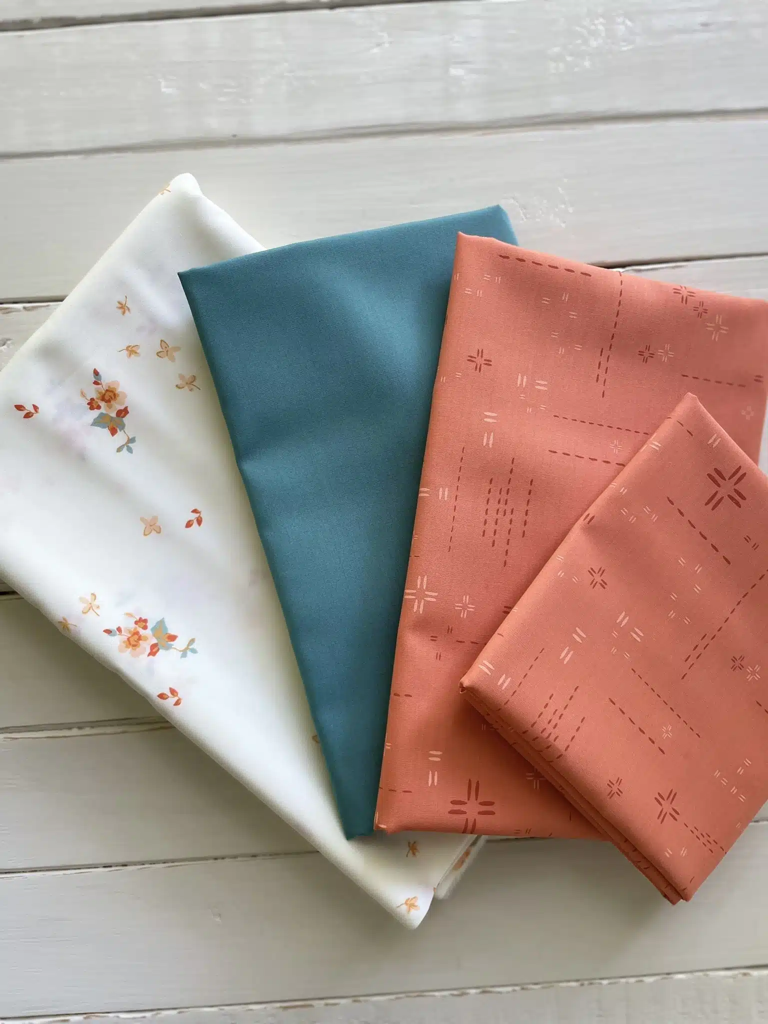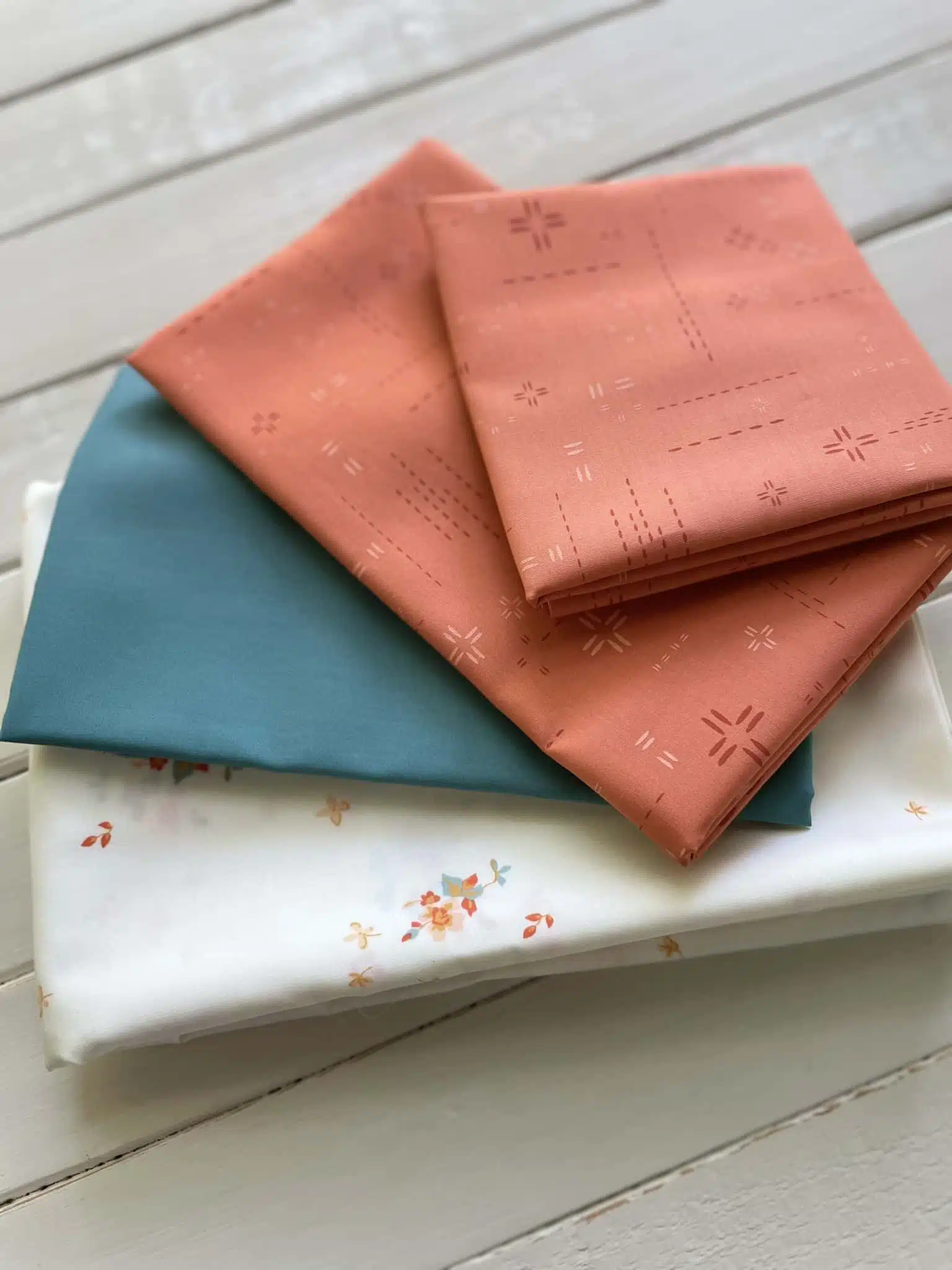 This quilt kit is for the Sunfield quilt. The fabrics in this kit are Art Gallery Fabrics; Delicate Balance Six, Pure Solids Swimming Pool, and Decostitch Red Desert. The kit includes enough fabric to complete the 60 1/2″ x 75″ Sunfield quilt top and binding.