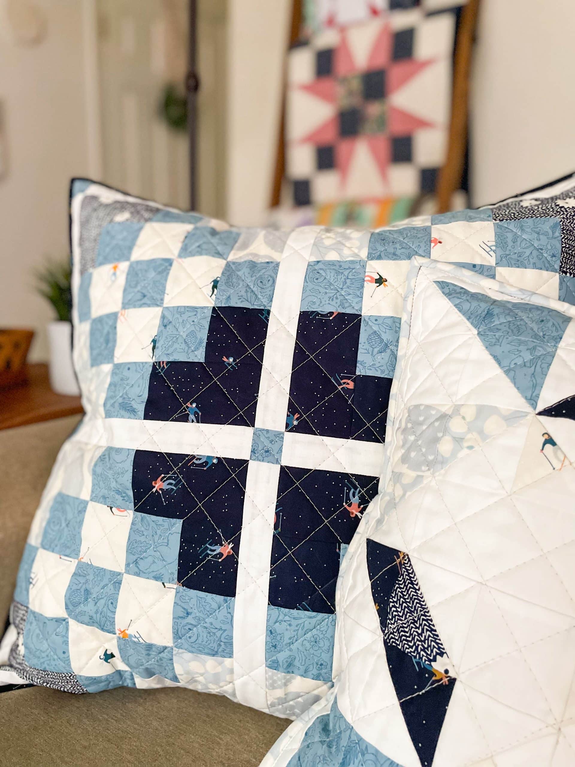 Village Square is a great pattern for beginners as well as seasoned quilters. It is pre-cut and scrap-friendly. Stitch up the Village Square Mini into a table topper, wall hanging, or pillow cover for a cozy addition to your home. If you like fast finishes, Village Square is a must-make. As a bonus, directions for making an envelope pillow are included in the pattern.